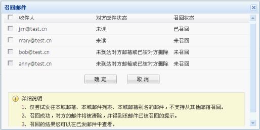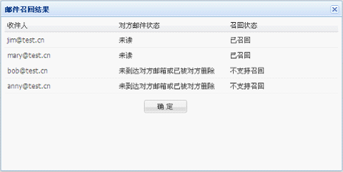 进行操作动作后显示"邮件召回结果":