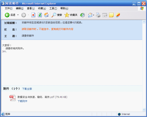 在"验证密码"文本框中输入邮件提示中的验证密码,输入成功可进入阅读页面;阅读页面内容为: