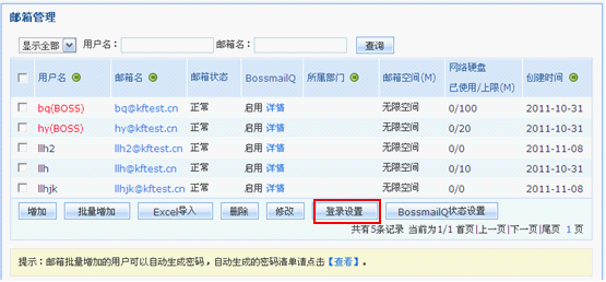 设置入口:邮局管理员登录邮局管理后台=>进入【邮箱设置】=>点击“登录设置”按钮,即可进入邮箱登录设置: