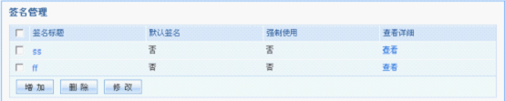 设置方法:邮局管理员登录邮局管理后台=>进入【签名管理】,即可设置企业统一签名,提供签名“增加”、“删除”、“修改”功能: