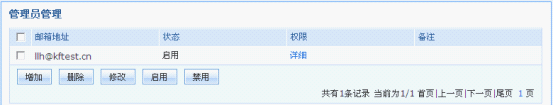 设置方法:邮局管理员登录邮局管理后台=>进入【管理员管理】,即可设置其它管理员,提供管理员“增加”、“删除”、“修改”、“启用”、“禁用”功能: