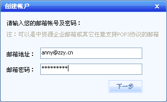 输入对应的邮箱帐号和密码,点击"下一步"。