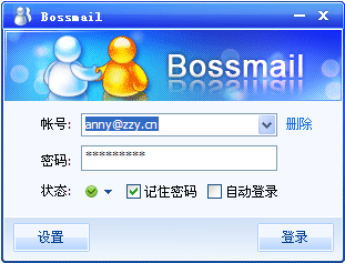 在输入框中输入中资源"邮箱帐号"和"密码",单击"登录"按钮即可进入BossmailQ主界面。