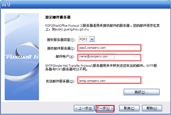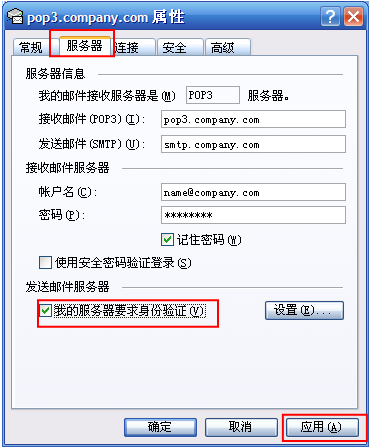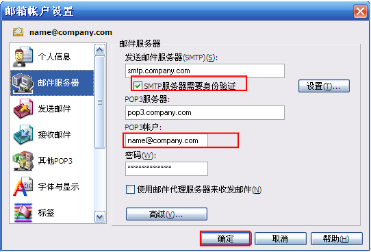 第四步:接收邮件POP3服务器:pop3.company.com