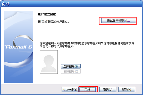 第三步:测试帐户设置
