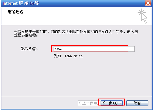 第二步:输入发送邮件的显示名: