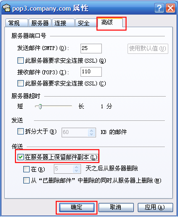 第九步:【高级】=>勾选"在服务器上保留邮件副本"