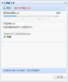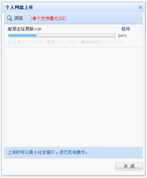 A: 中资源超大文件上传助手是指专为Bossmail邮箱用户在网络硬盘上传文件时使用的上传插件,在上传时,将上传任务(一个文件或一个压缩包)人为的划分为几个部分,每一个部分采用一个线程进行上传,如果碰到网络故障,可以从已经上传的部分开始继续上传以后未上传的部分,而没有必要重头开始上传。用户可以节省时间,提高速度。通过超大文件上传助手上传文件,可支持最大2G的单个文件上传。