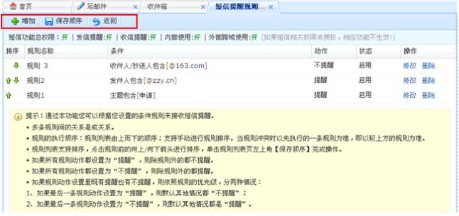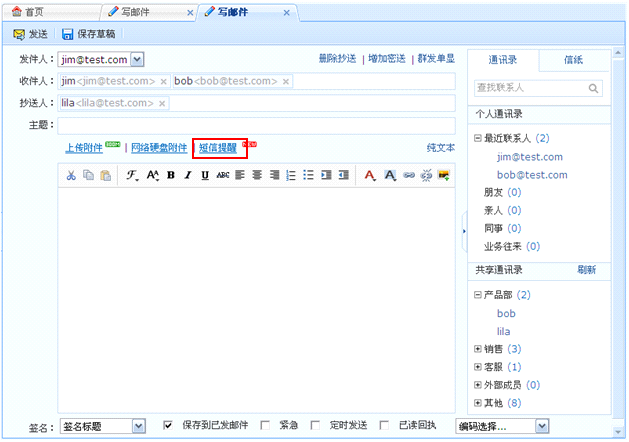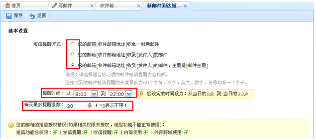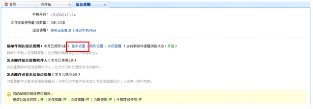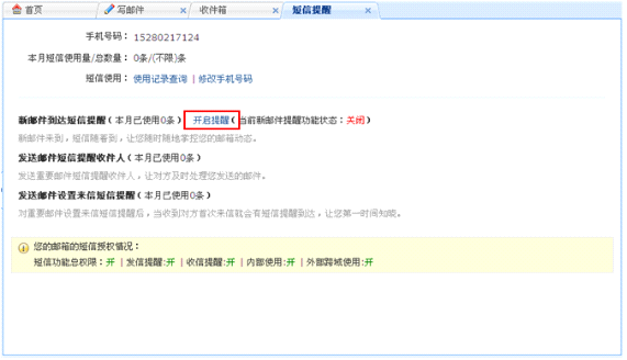 A: 开通了短信提醒的用户,可以设置收发邮件时发送手机短信提醒。